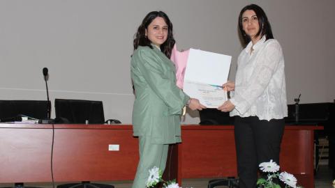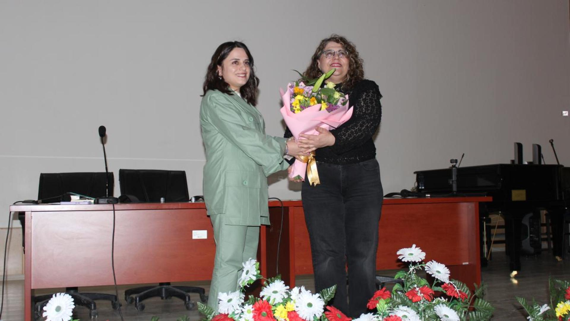 Konferansın sonunda Moderatör Öğr. Gör. Dr. Gülseren Erhan, kırsal kalkınmayı destekleyen ve kadınların üretimde daha görünür olmasını sağlayan çalışmaları nedeniyle Tuba Çiçek’e teşekkür etti ve çiçek takdiminde bulundu.